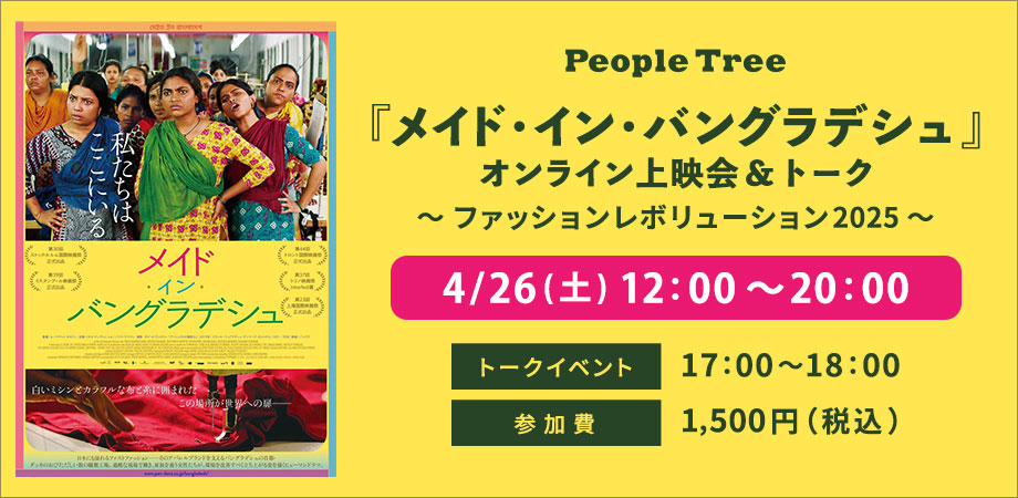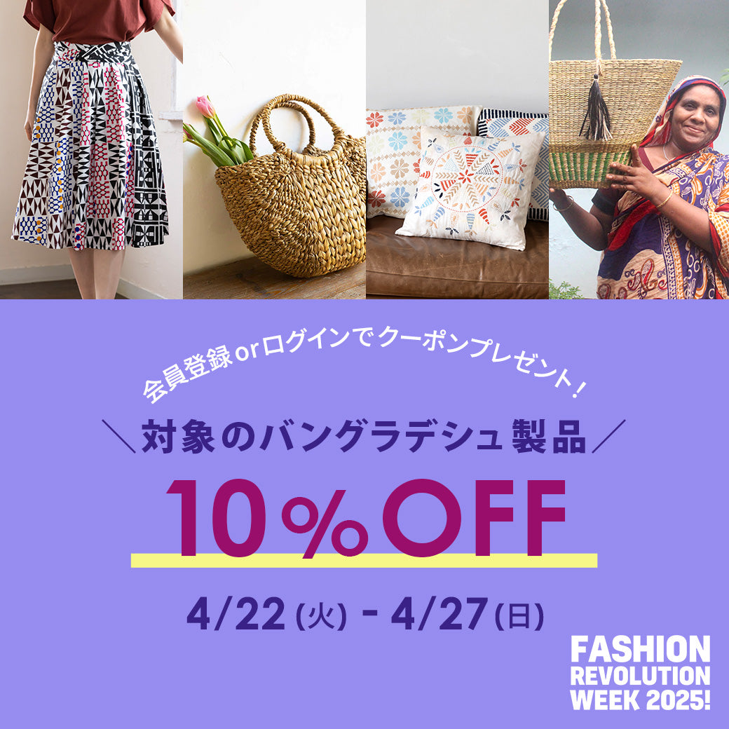 映画「メイド・イン・バングラデシュ」オンライン上映会&トークイベントにちなんで、サイト会員さまへ、バングラデシュでつくられたアイテムに使える10%OFFのクーポンコードをプレゼント!