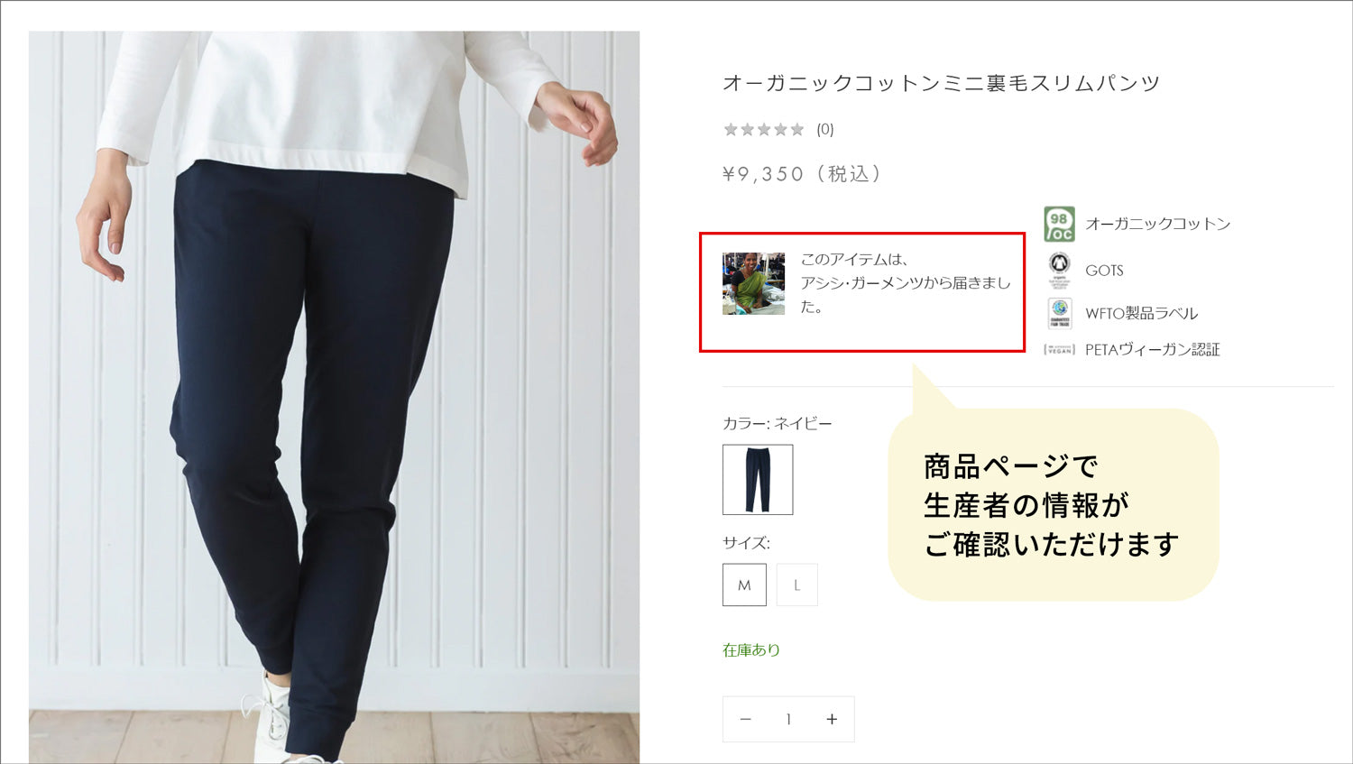 ピープルツリーはフェアトレード専門ブランドとして、すべての商品において生産背景の透明性を確保しています。