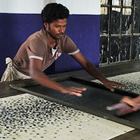 ●両サイドにポケット、ウエストに紐つき/コットン100%/サシャ・ハンディクラフト/インドより