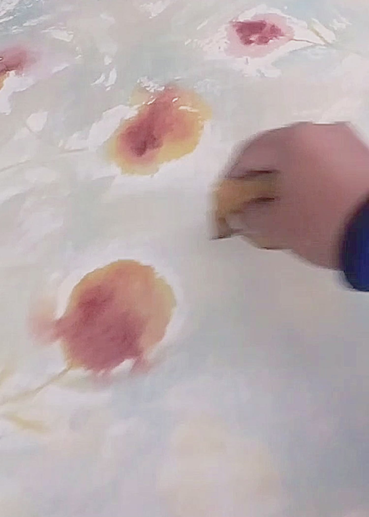 色のにじみ具合や勢いは、1点もの。まさに手仕事ならではの味わいです。