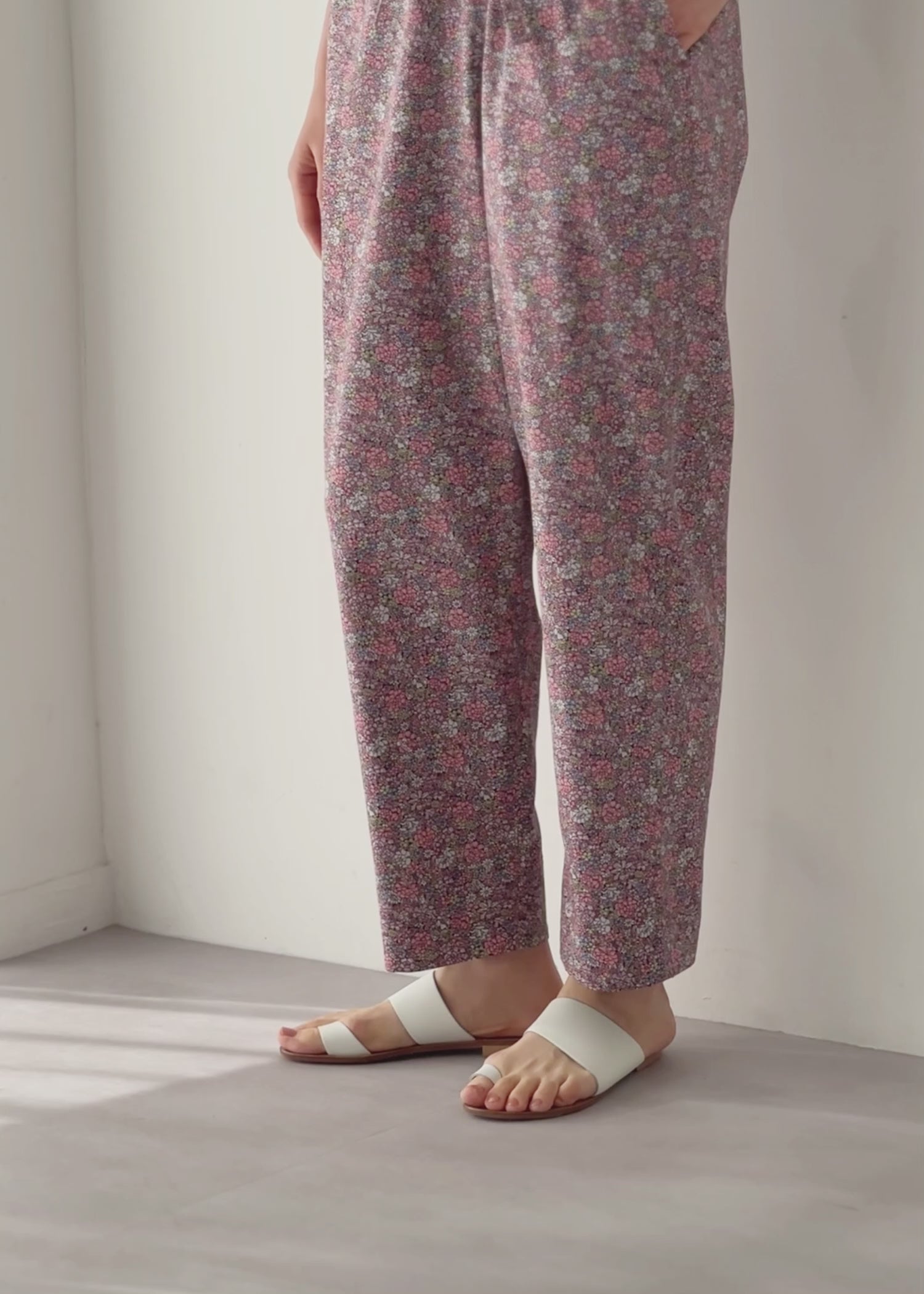 V&A オーガニックコットンサテンイージーパンツ フローラリア柄