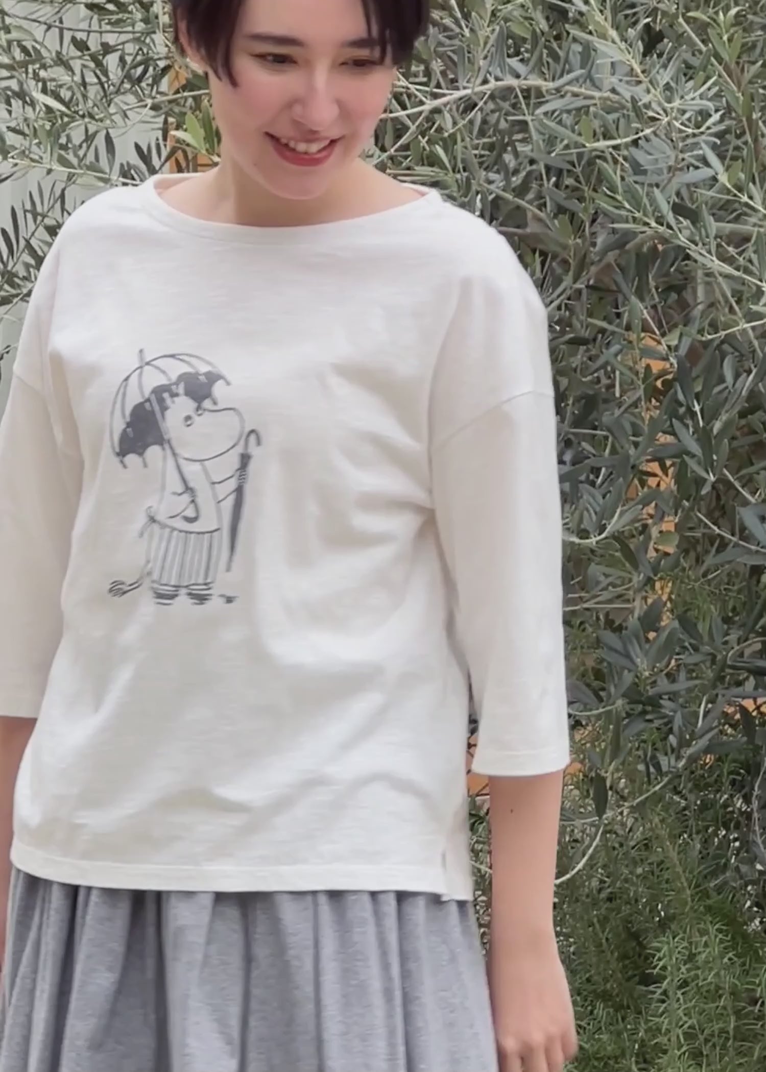 ムーミン オーガニックコットンビッグTシャツ・傘を届けるムーミンママ