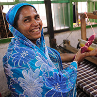 手織りは機械織りに比べて多くの雇用を生むだけでなく、電力を使用しないのでCO2の排出量を抑えることができる環境にもやさしい伝統技術です。